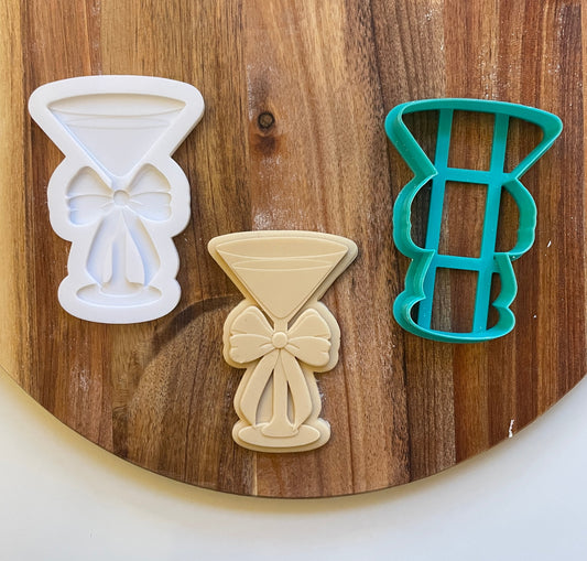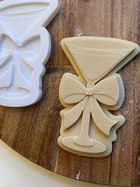 Cocktail Martini Glass With Detailed Bow | Embosser /Debosser And Cutter Set. Fondant Embosser.
