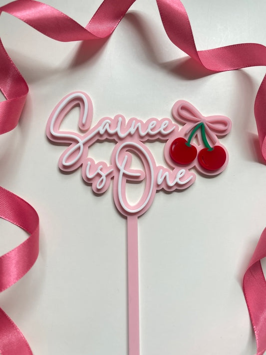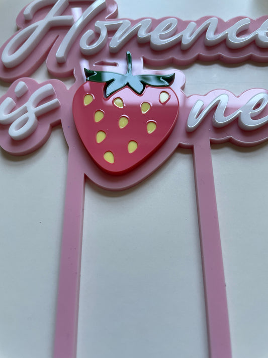 • Strawberry cake topper. First birthday topper.  Personalised Acrylic charm.
