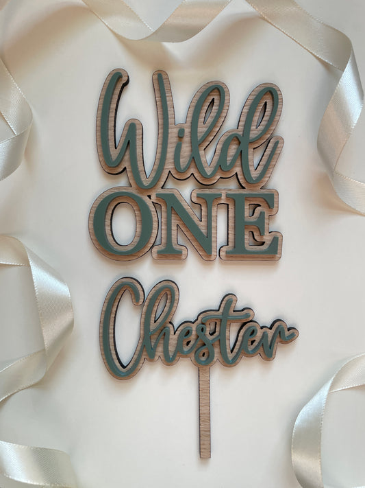 • Wild One Cake Charm | Name Topper  | Wood And Acrylic