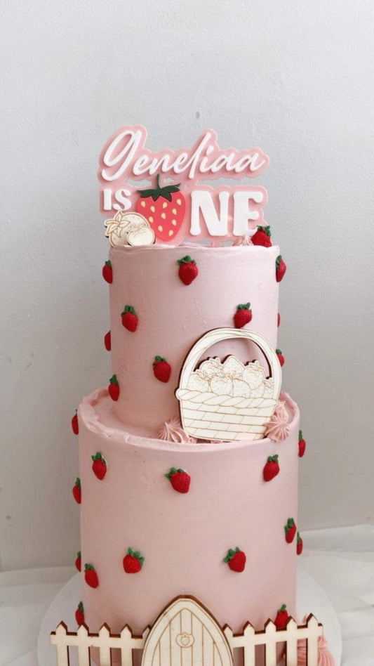 • Strawberry First Birthday | Acrylic Cake Charm / Topper