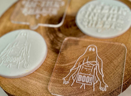 Boo! Halloween debosser and cutter set. fondant debosser / embosser for biscuits and cakes.
