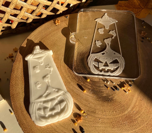 Cute ghost holding pumpkin debosser. Matching cookie cutter available. Halloween Debosser / Embosser