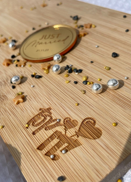 Just Married cupcake charms. Gold wedding favours. Cupcake topper. Personalised with name or date.