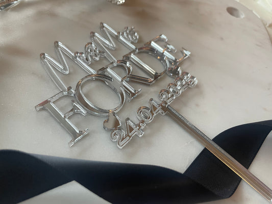 Mr & Mrs acrylic wedding topper. Silver. Gold. Rose Gold. Wood.