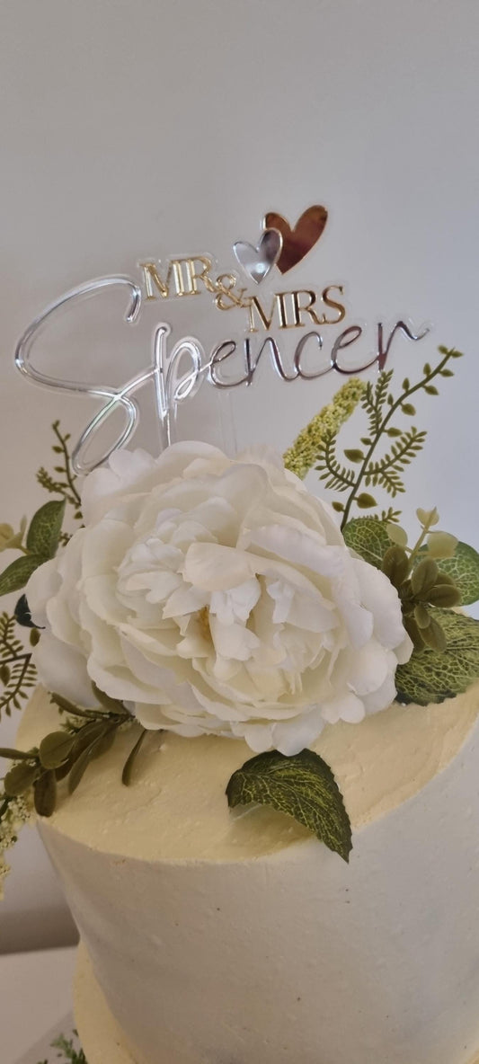 Mr and Mrs Name wedding cake topper. Mr and Mr. Mrs and Mrs. Gold and Silver acrylic.