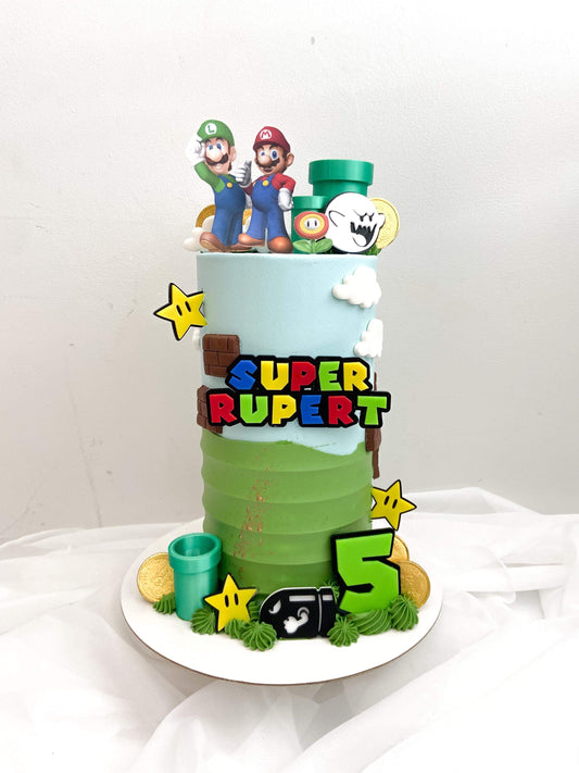 Super Acrylic name and age charm. 3d green pipes. Acrylic topper and star set.