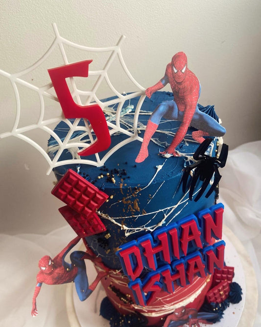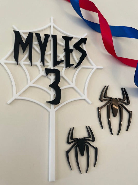 Spider web and spider topper set. Acrylic. Perfect for a spider man fan. Black and white acrylic cake topper set