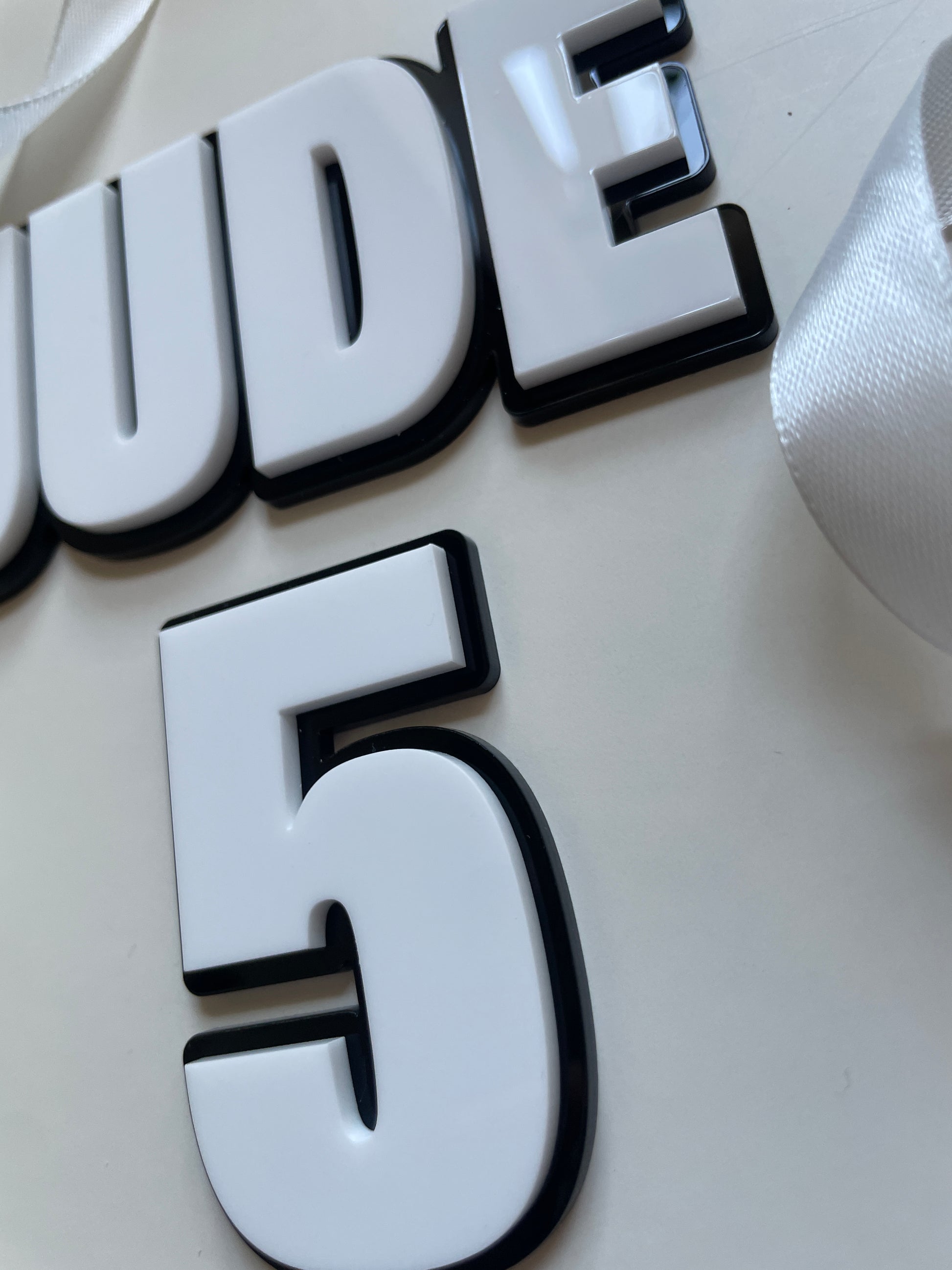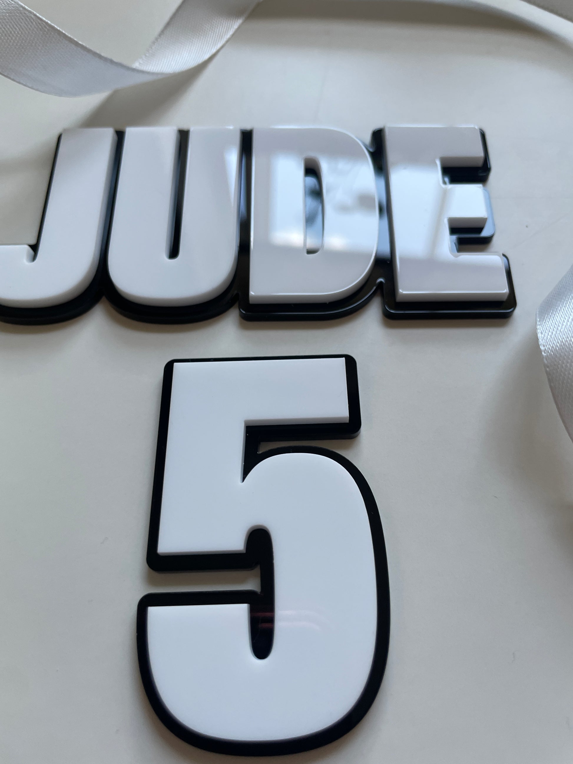Make your celebration pop with our Black & White Acrylic Name & Age Cake Charm!
