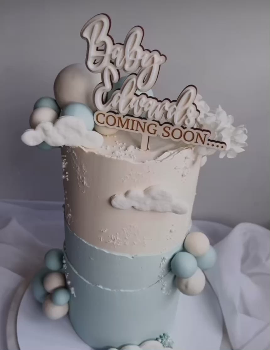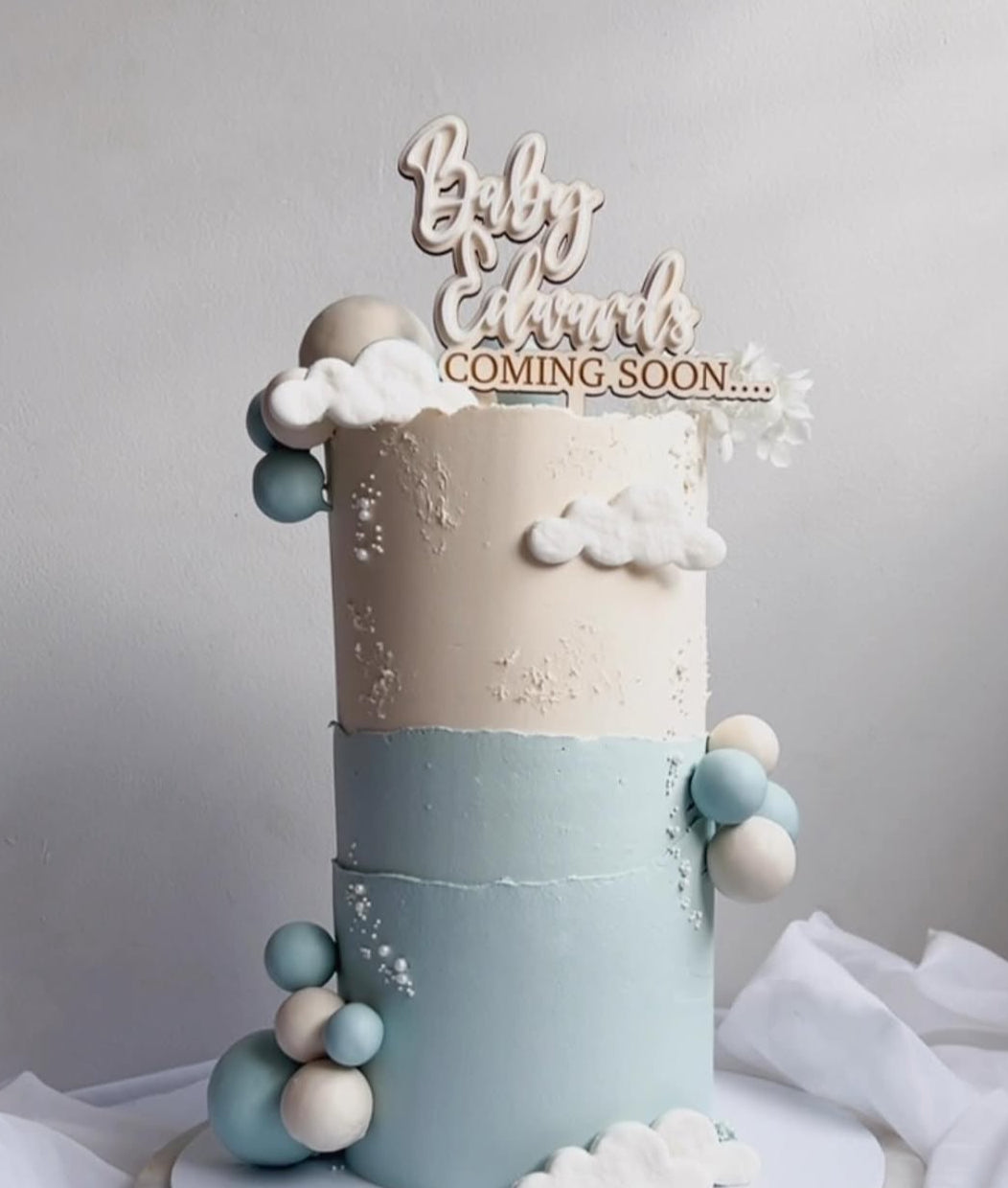 Coming Soon Baby Name Cake Toppper. Wood And Acrylic. Personalised.