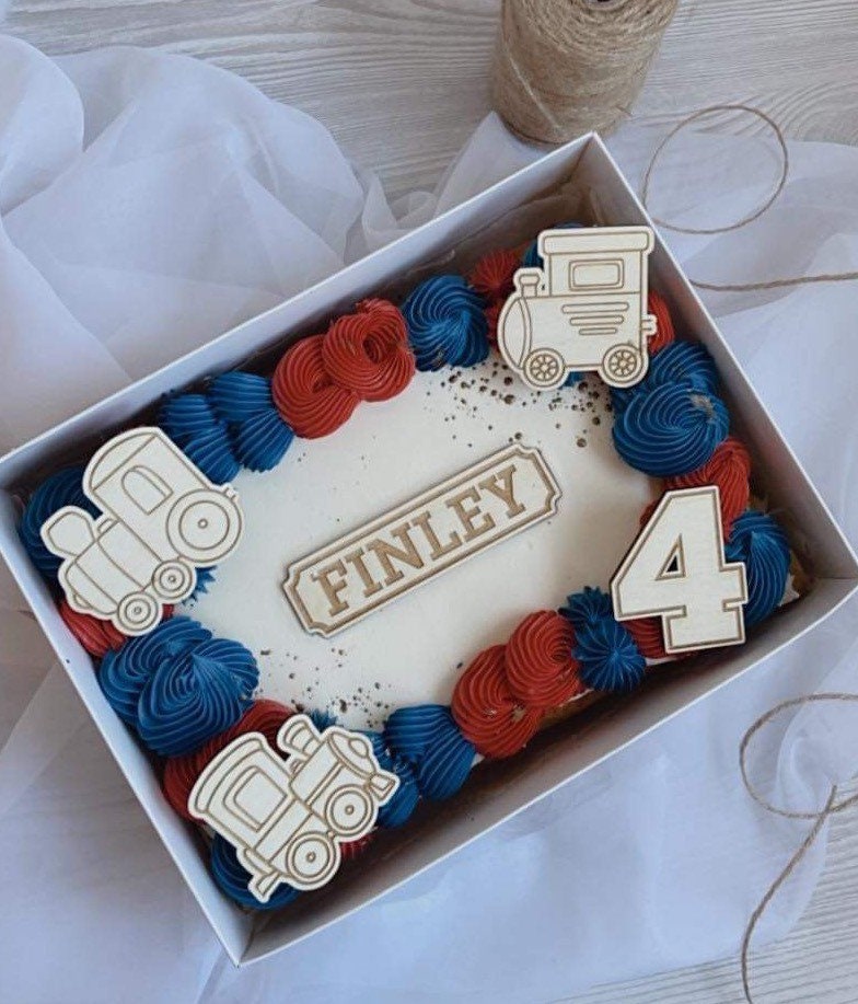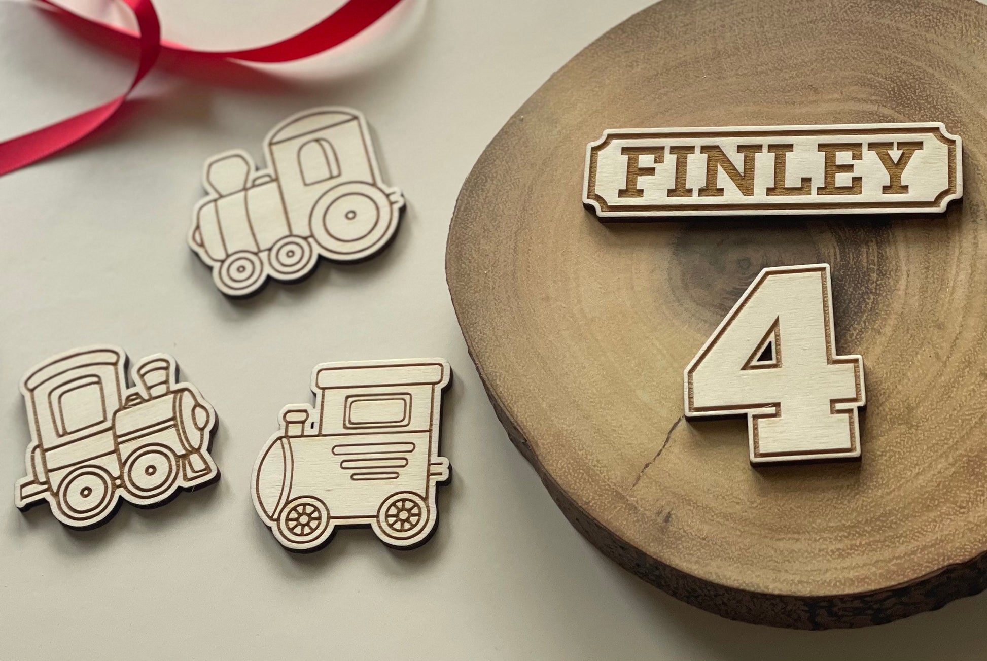 Kids wooden train cake topper set. Cake charms. Train theme cake toppers. Train sheet cake toppers.