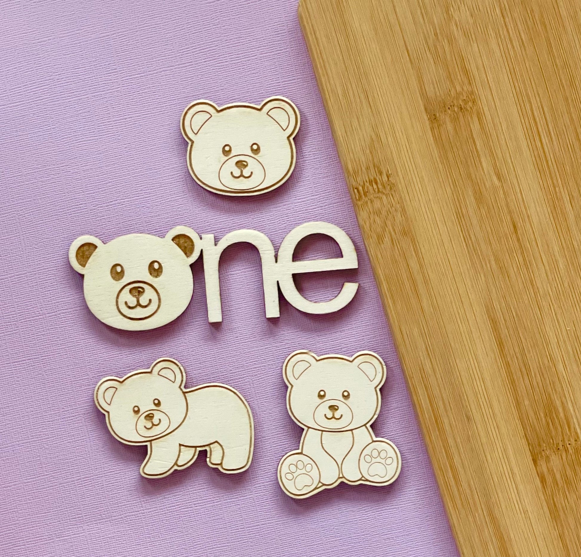 One Bear cake charm. First birthday topper. Wooden bears and topper set. Sheet cake charm. Bear themed party.