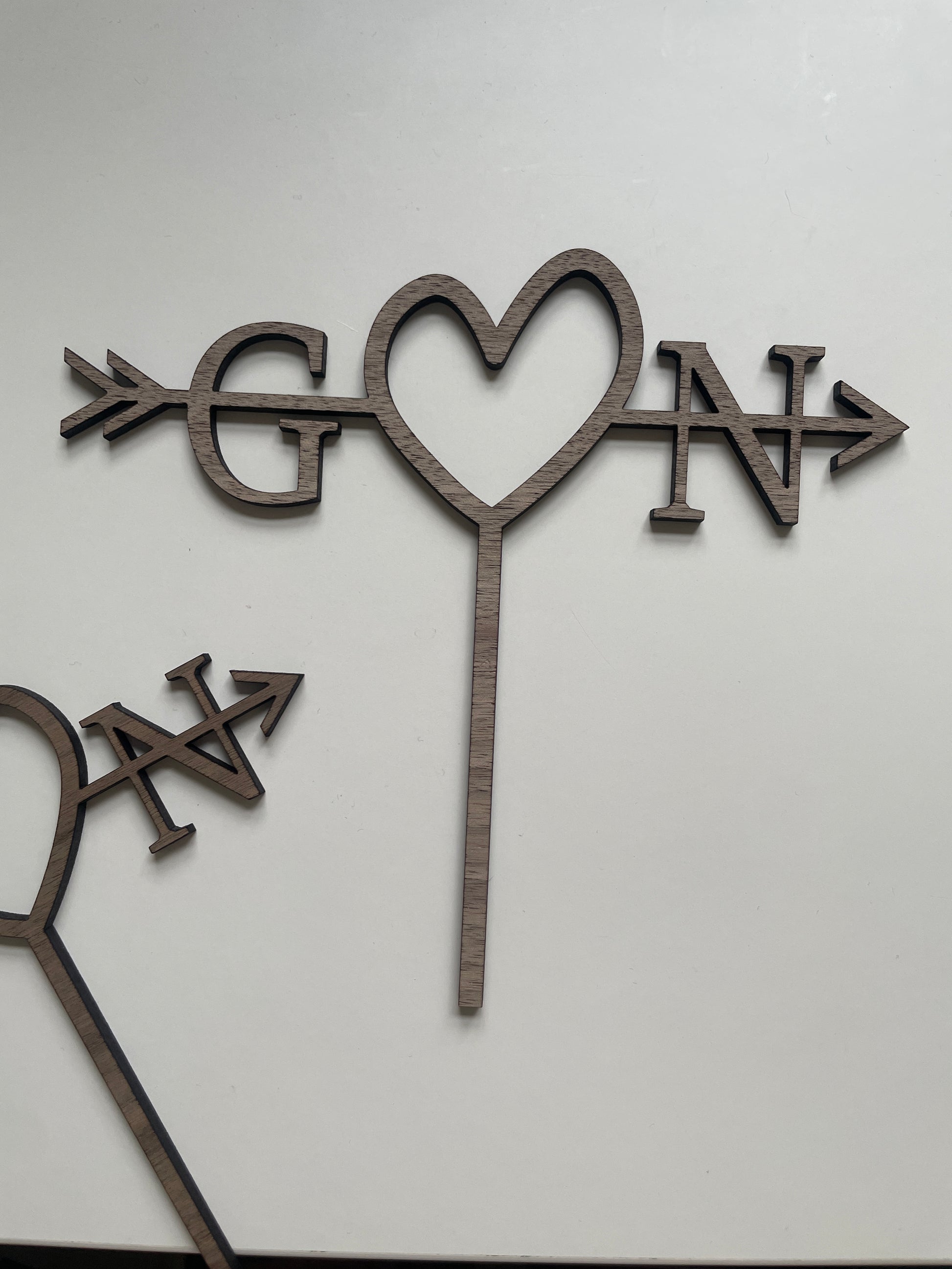 Rustic Wedding Cake Topper. Initials and Heart Design. Engagement Topper. Anniversary Topper.
