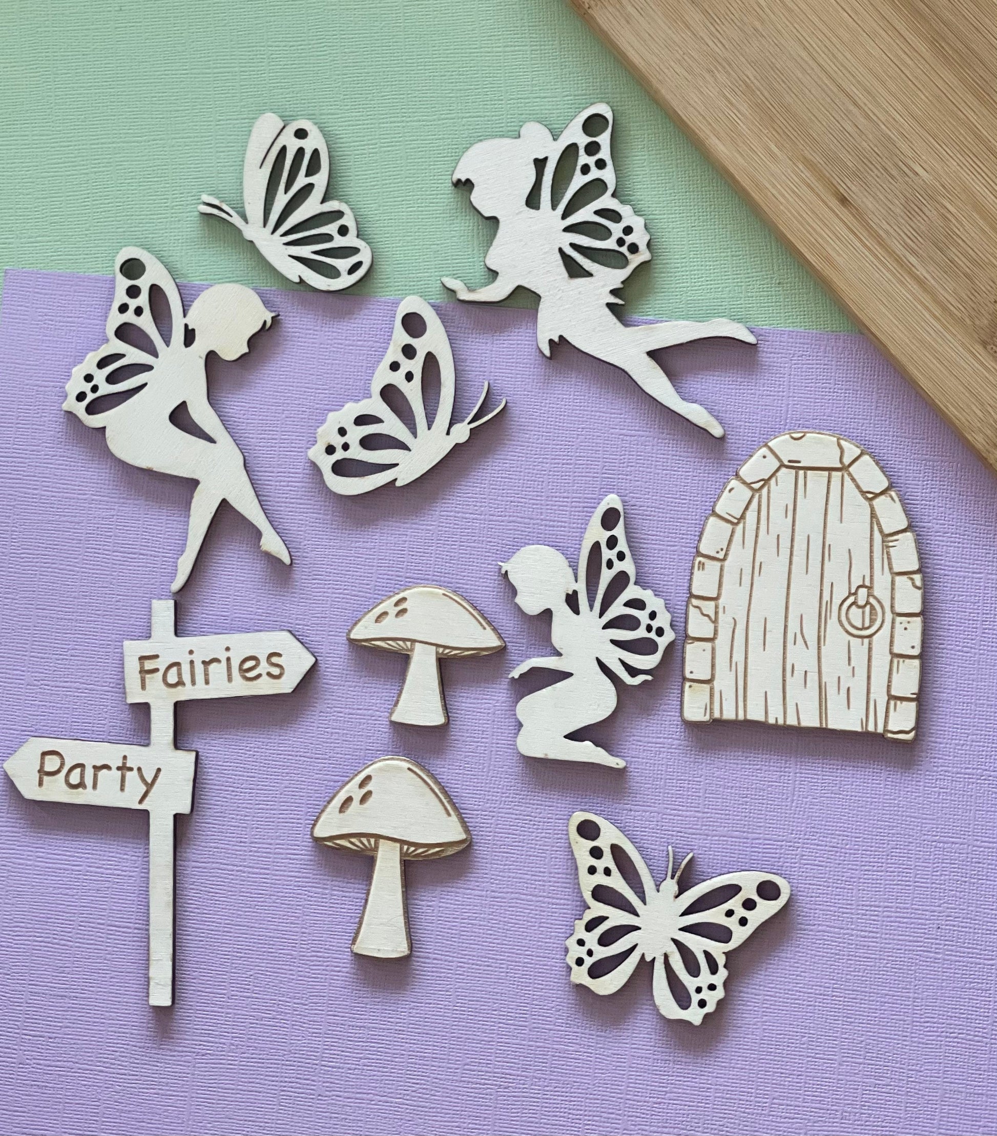 Our fairy garden toppers come in a variety of sets to choose from. Perfect for a fairy themed cake , sheet cake or cupcake.