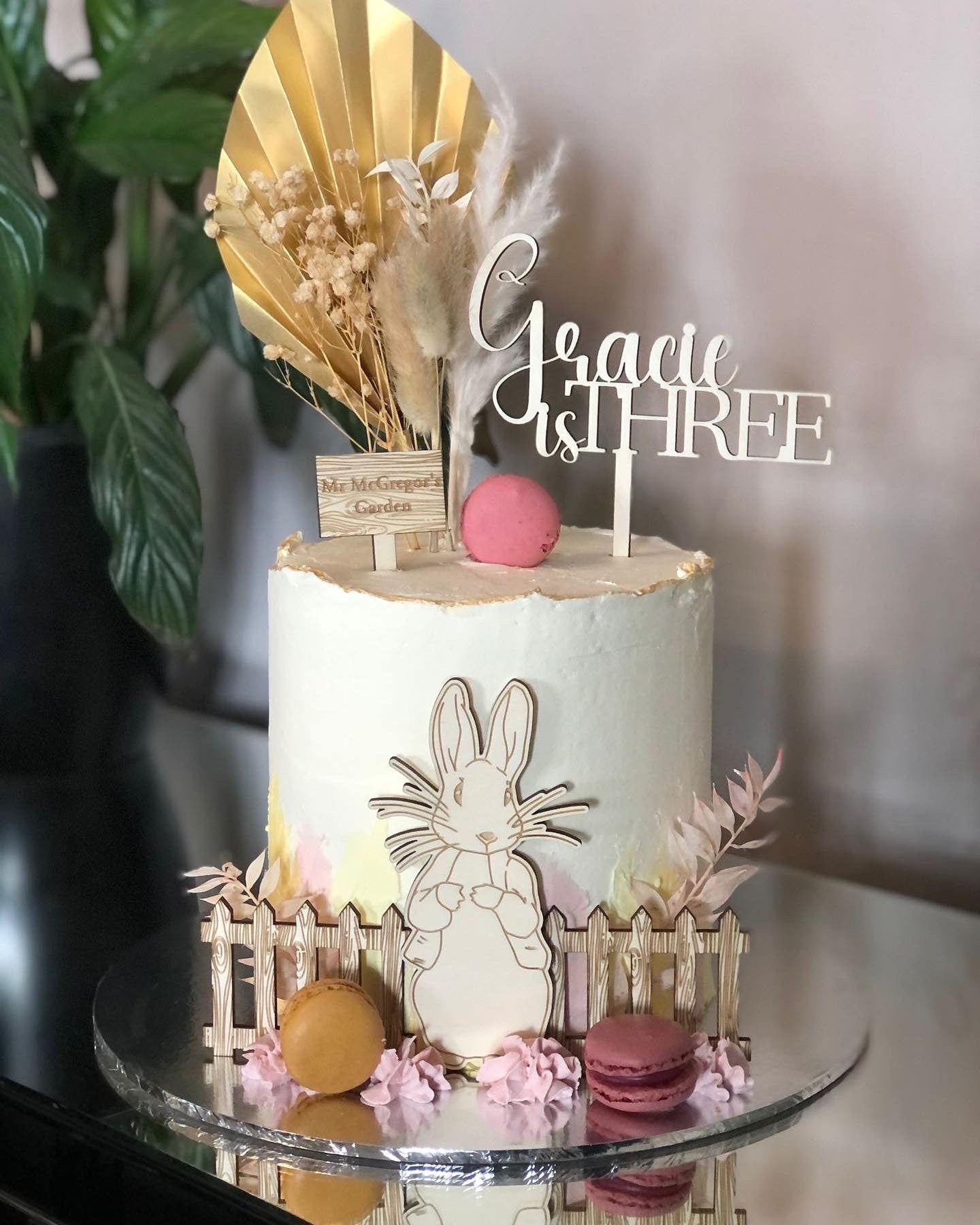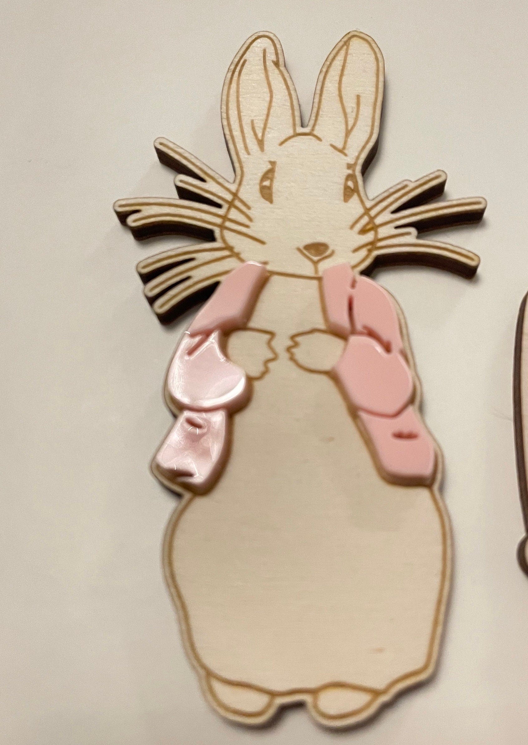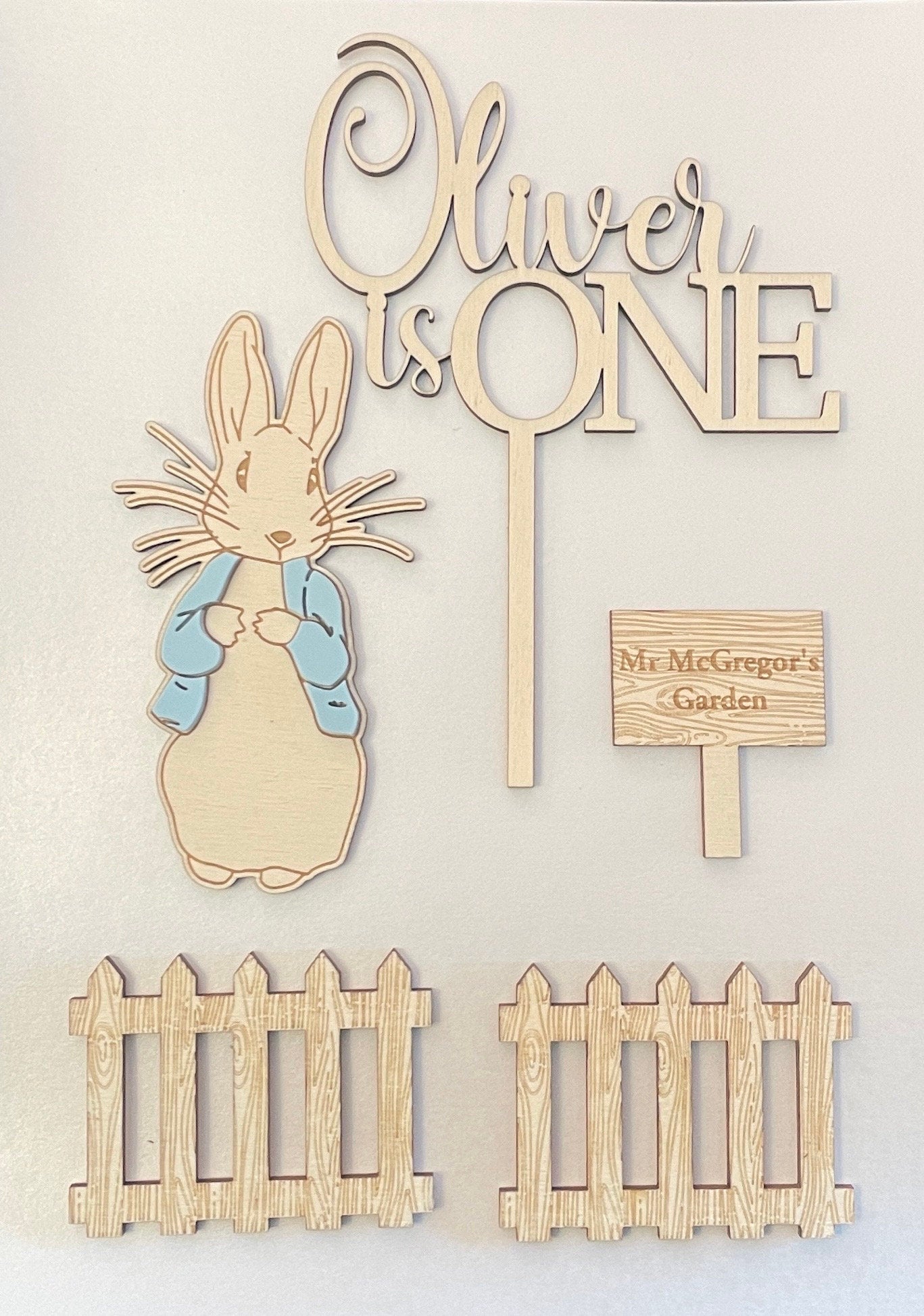 Wooden Rabbit cake topper set.